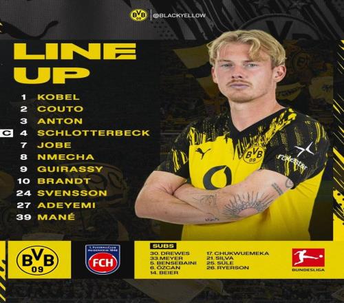 北京时间2月2日0:30,德甲第20轮,多特主场对阵海登海姆。赛前首发公布。