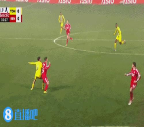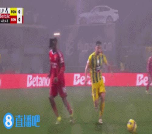 第36分钟,西托勒身后踩踏犯规染黄↓