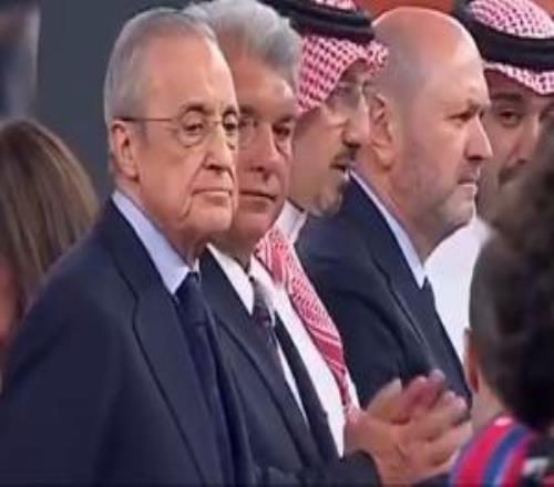 这眼神!西超杯赛后颁奖典礼上弗洛伦蒂诺拥抱阿隆索,脸色铁青!